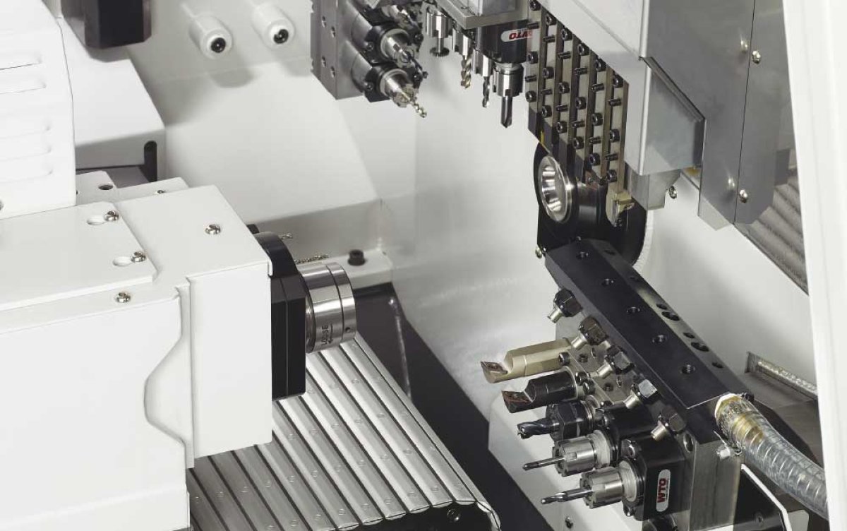 Brandneues Modell mit verbesserter Funktion und bietet optimale Bearbeitungsbedingungen. Einfaches Umrichten der Materialdurchmesser durch flexible Führungsbüchsentechnologie - MAGIC GUIDE BUSH.